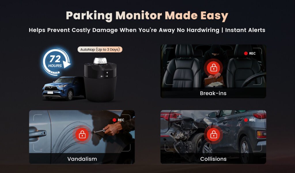 During a daily drive, the P10 Pro records both the road ahead and the cabin in crisp 1080P. The front camera handles tough lighting with WDR and glare reduction, while the in-cabin camera uses IR night vision to keep things clear after dark. If there’s a collision, emergency recording kicks in to save the most important footage. And in a real emergency, the Instant Golden Hour feature can send images and your location to your emergency contacts right away.
