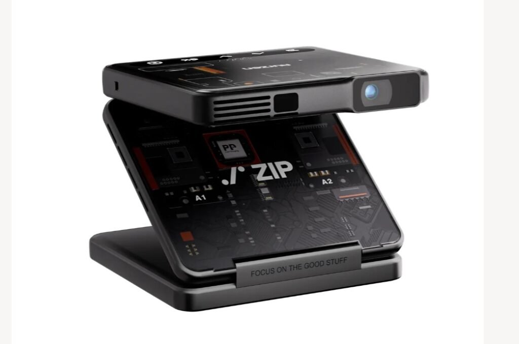 The ZIP Cyber Edition makes its U.S. debut as the world’s first tri-fold portable projector. It sports a cyber-inspired look and folds down to just one inch thick, so it fits easily in a glovebox or backpack. The projector uses DLP tech with 720p resolution and supports AirLink one-click mirroring, so you can stream content without Wi-Fi. The built-in battery lasts up to 1.5 hours, and USB-C fast charging keeps you powered up on the go.