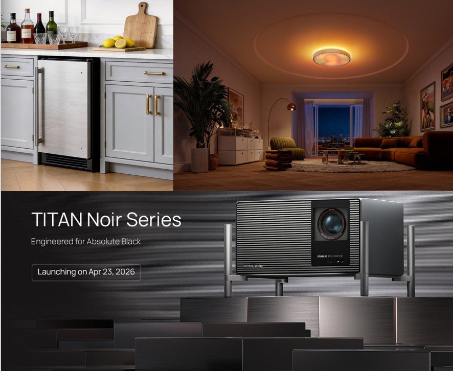 The flagship TITAN Noir Max boasts 7,000 ISO Lumens, an RGB triple-laser engine, and 110% BT.2020 color coverage. It supports IMAX Enhanced, Dolby Vision, and HDR10+. For gamers, the series offers a refresh rate up to 240Hz and is the official partner of EA SPORTS FC™ 26.