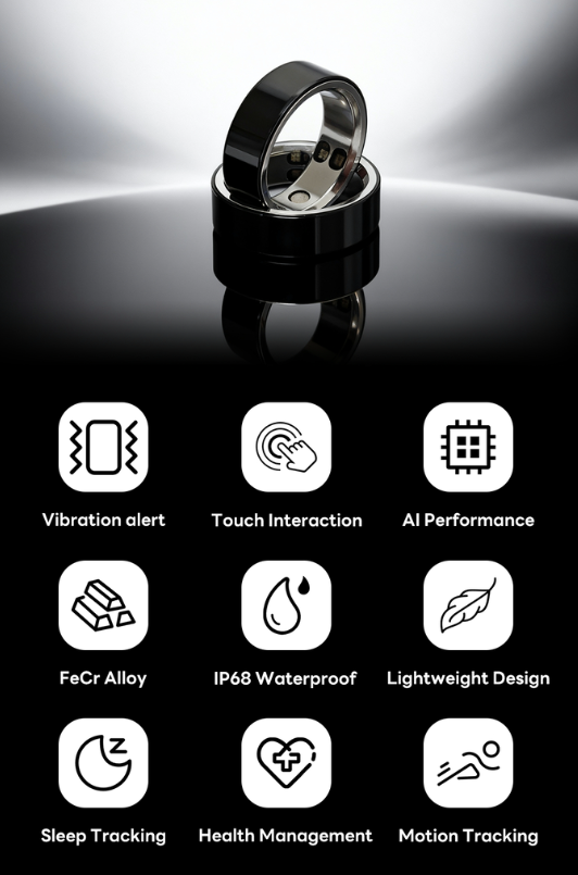Oryvo Ring is an AI-powered wearable designed for everyday use. It combines smart touch controls, health tracking, and a lightweight, comfortable build. The ring monitors heart rate, SpO₂, temperature, sleep, and fitness metrics, delivering updates without disrupting your routine. Made from stainless steel and ceramic, it is waterproof to IP68 standards and lasts up to seven days on a single charge.